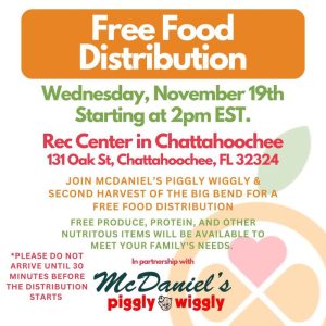 McDaniel’s Piggly Wiggly is partnering with Second Harvest of the Big Bend to host two free food distribution events on Wednesday, November 19, to support families in need across the region.